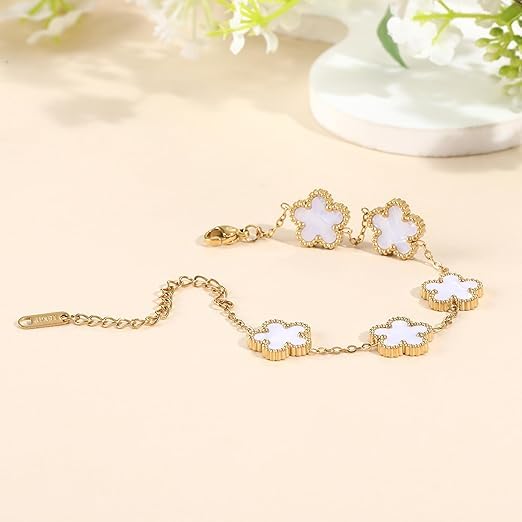 SMARTEDGE - 18K Gold Plated Stainless Steel Smart Edge Bracelet Four-leaf Clover Design Jewelry Gift for Women