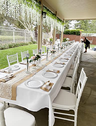 - 🍷Extra Length and Density: Our lace jute table runner roll measures 12"x 20yards,our lace burlap table runner has more weaving compared to other simpler jute table runners, All burlap rolls are stitched and overlocked on the edges so they won't fray and will be more durable. Stylish burlap table runners are farmhouse style table runners suitable for outdoor weddings and dinners, barbecue parties, and will impress your guests.