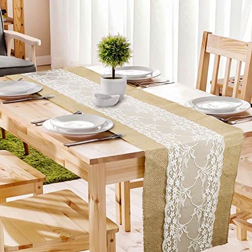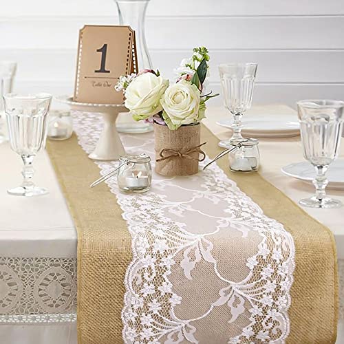 - 🍷Stylish and Eco-friendly: This lace hessian rustic jute table runner is made of 100% jute, with a classic lace design,which is natural and eco-friendly, with a stylish retro color, allowing you to use it multiple times and for a long time, suitable for any outdoor as well as indoor activities. Hessian is environmentally friendly and 100% biodegradable, it will naturally degrade even if it is discarded after a long period of use, making it ideal for landscaping.