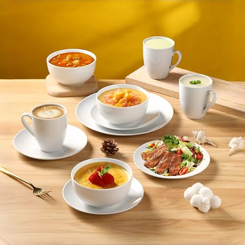 - Complete 18-Piece Set: Designed for everyday dining, the set includes four bowls, four side plates, and four dinner plates, ensuring you have a complete and cohesive table setting. Crafted from high-quality porcelain, this dinner set ensures longevity and resilience, promising to stand up to the demands of everyday use.