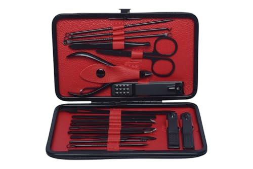 Generic - مجموعة العناية الشخصية 19 في 1، مجموعة العناية بالأظافر والباديكير، 19 قطعة، لون أسود