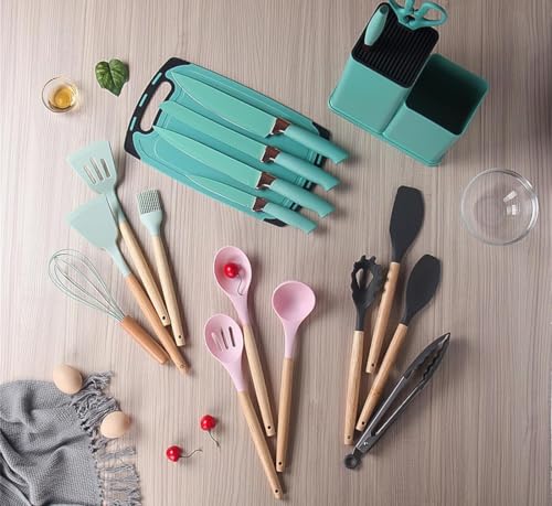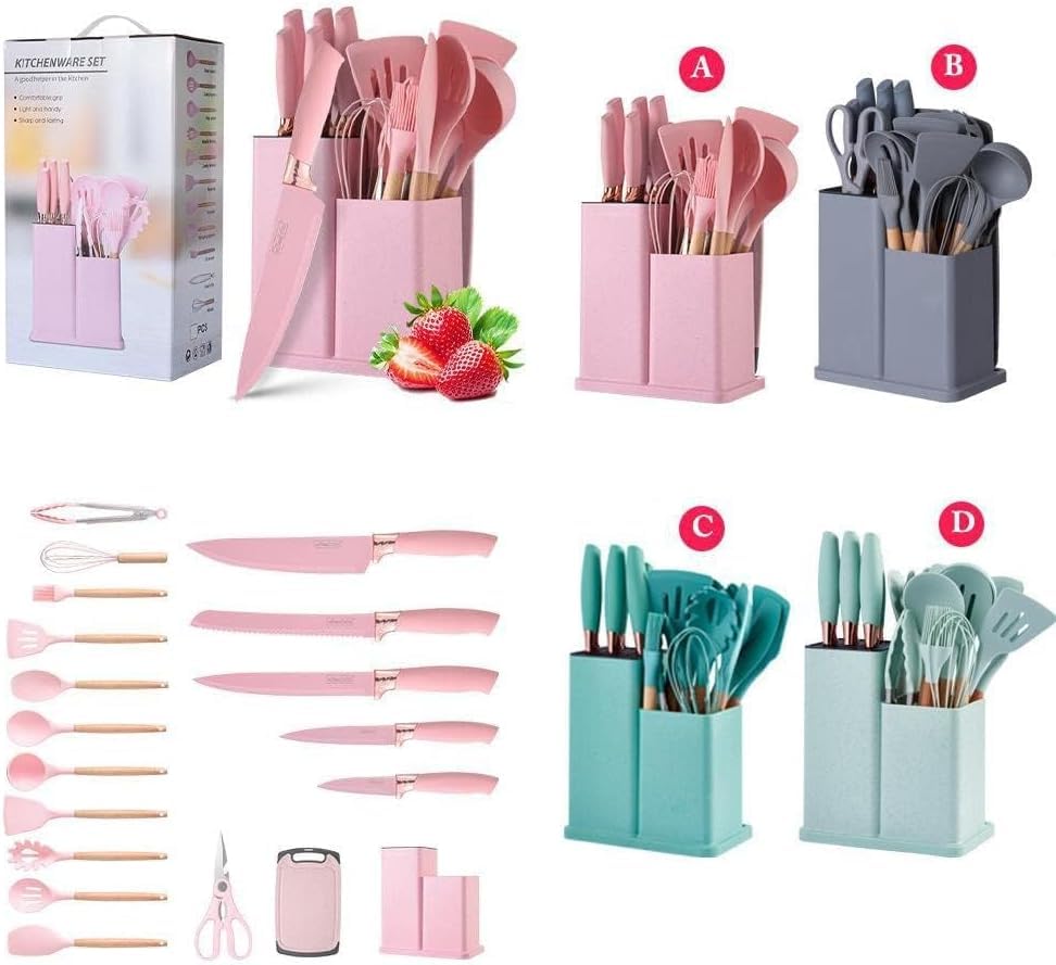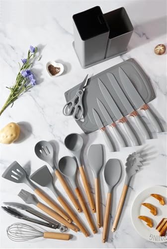 AREXOL - 19-Piece Complete Chef Kitchen Set Stainless Steel Knives Silicone Wooden Utensils Granite Chopping Board with Practical Organizer for Home Cooking