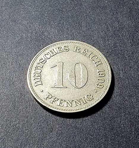 Generic - عملة قديمة نادرة ١٠ فينيغ الماني ١٩٠٩ م النادرة والشحيحة بحالة عالية، الألومنيوم، رمادي