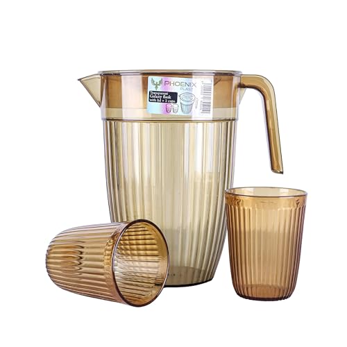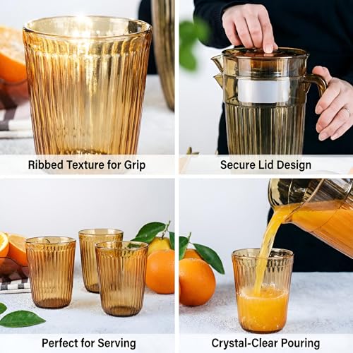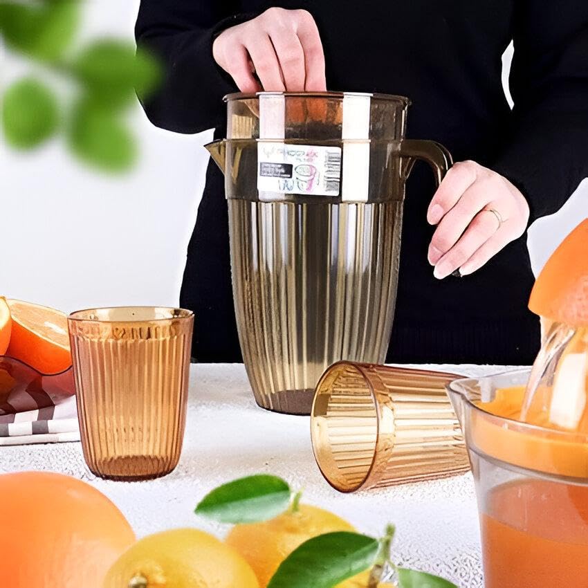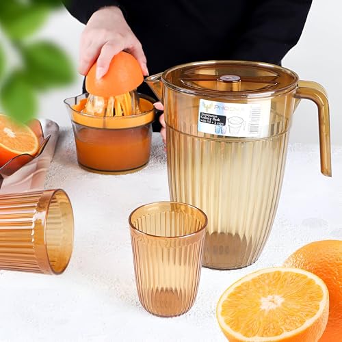 - Crafted from high-quality, BPA-free plastic material, the pitcher and cups are safe for refrigeration and dishwasher use, preserving flavor integrity without odor retention and enabling quick, hassle-free cleaning after every use.