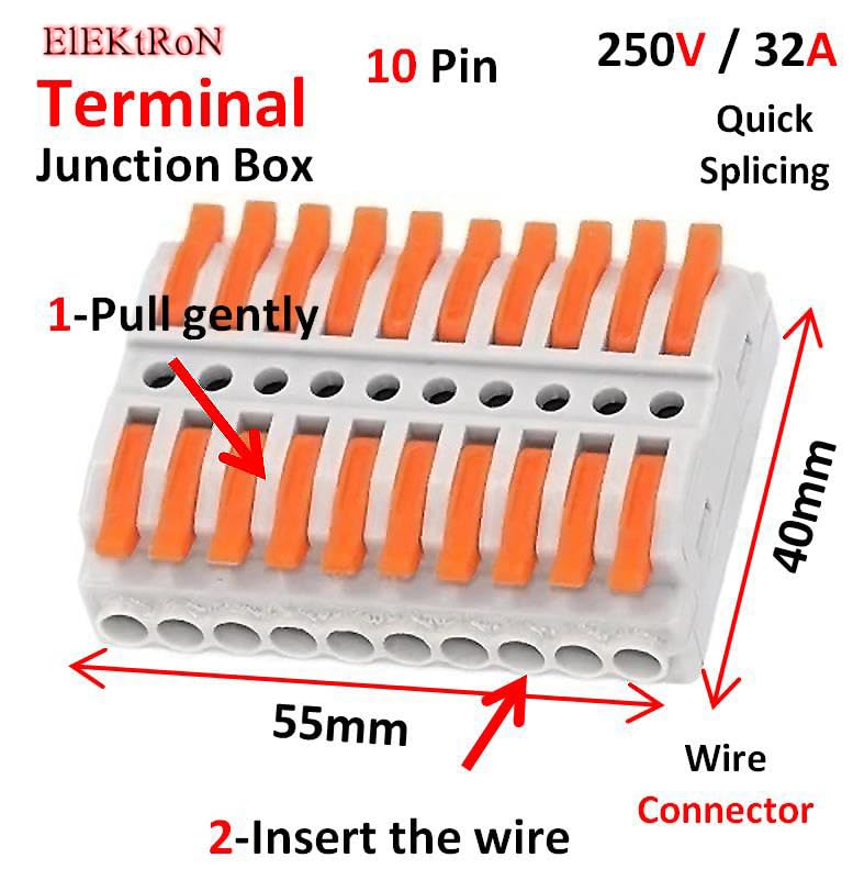 - 1 x 10 Pin Quick Use Wire Connector - Mini Fast Terminal 10 pin Quick Multi circuit Splicing Butt Wire Connector 250V 32A Home Spring Splicing Push arduino Junction Box
