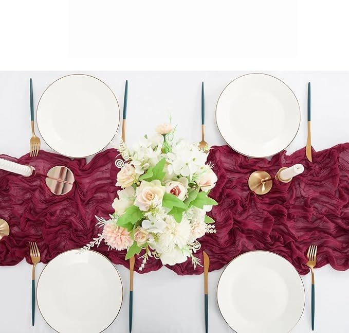 - Soft & Flowing Fabric:Crafted from lightweight polyester gauze, this table runner features a delicate wrinkled texture that enhances its rustic charm, creating a soft and elegant atmosphere for your dining or event space.