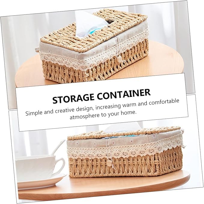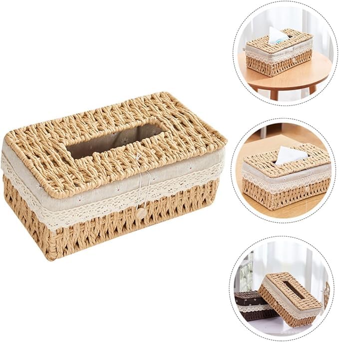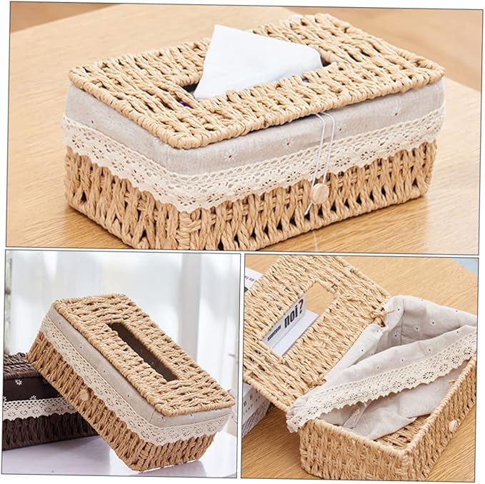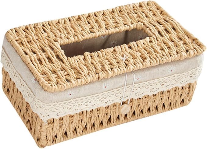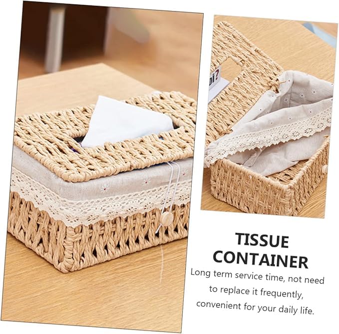 - حافظة مناديل فريدة من نوعها - صندوق مناديل منسوج يدويًا متين ومقاوم للتآكل مناسب لتنظيم المناشف الورقية وحاوية المناديل