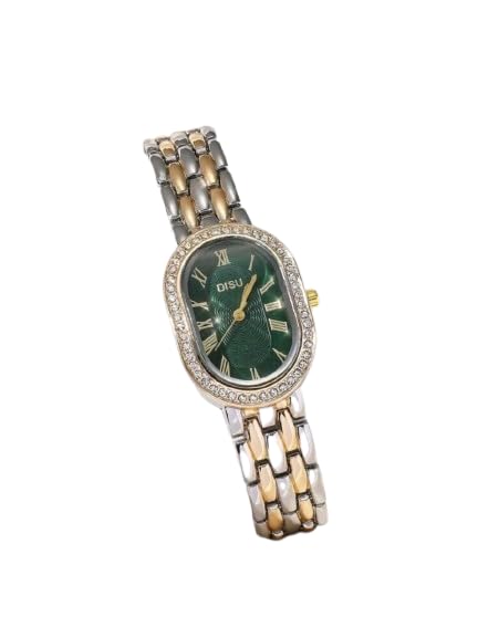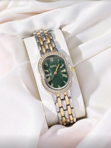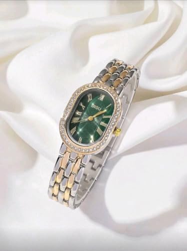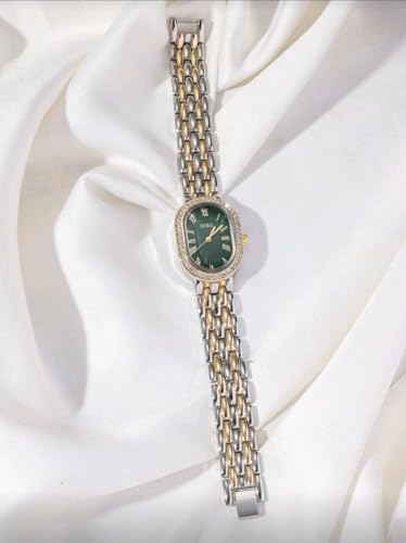 Generic - ساعة يد كلاسيك للنساء بمينا بيضاوي وسوار من الفولاذ المقاوم لصدأ بلونين وحركة كوارتز مرصعة بالألماس، متعددة الألوان، قطعة واحدة