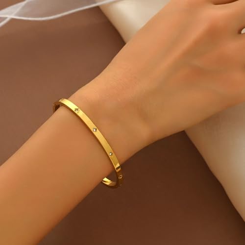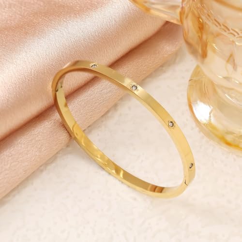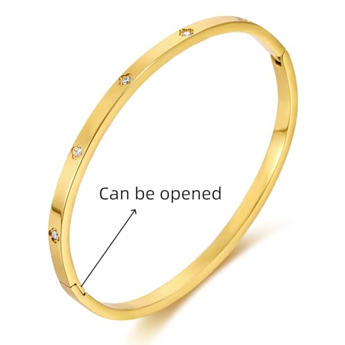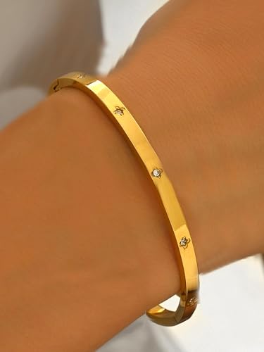 FRIDAYIN - سوار من الستانلس ستيل المطلي بالذهب عيار 18 قيراط باربع اوراق البرسيم للحفلات والارتداء اليومي مرصع بالزركونيا المكعب مناسب للهدايا للفتيات والنساء والأصدقاء وحفلات الزفاف واعياد الميلاد وعيد الحب (تصميم سي)