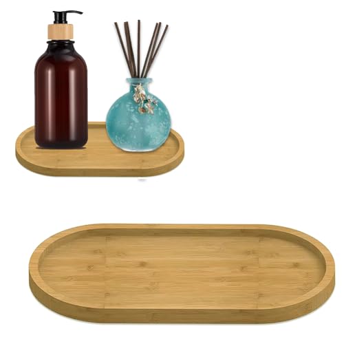 Modurio - 1pcs Bamboo Soap Dispenser Tray, Oval Bamboo Tray for Shampoo & Soap Bottles, 17.5×8.8cm Multi-Functional Countertop Organizer for Perfume, Candle, Plant Pot Holder, Small Wooden Dish & Kitchen Trays