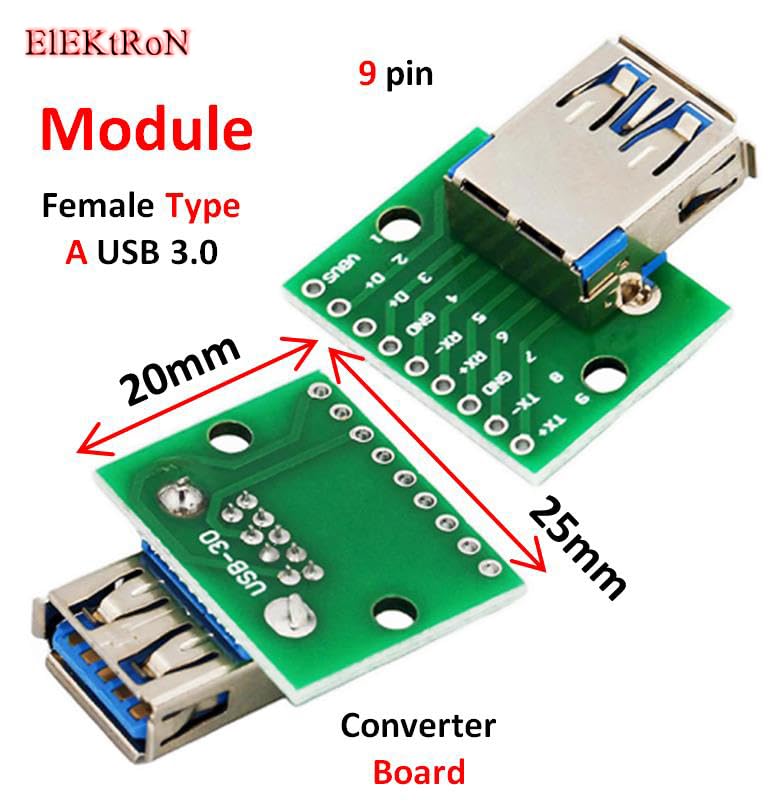 - 1Pc Female USB Type A USB 3.0 To DIP Adapter 9pin Connector Converter Breakout Board for Arduino Switch Breadboard Module