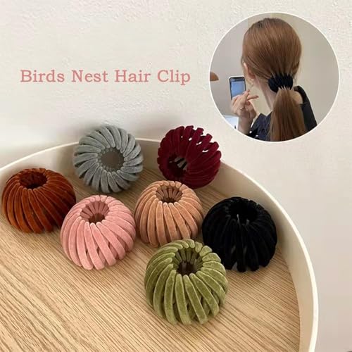 Generic - 1Pcs Lazy Bird's Nest Plate Hairpin, Expandable Ponytail Holder Clip Birds Nest Hair Clip, Fashion Bun Makers Hair Accessory Donut Bun Maker for Women Girls (Green, One Size)