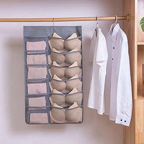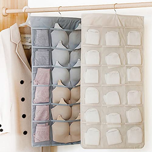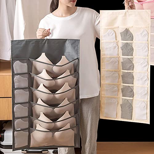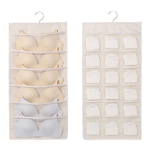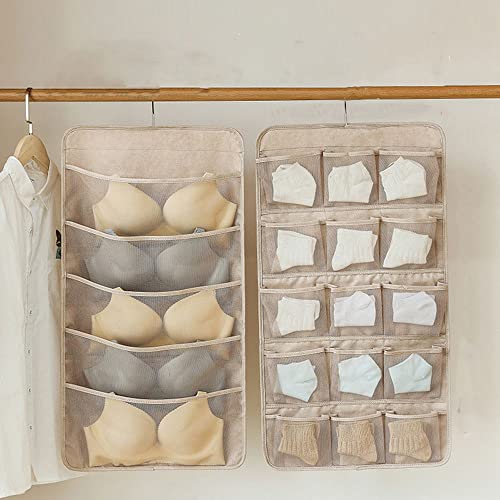 Spaceshoop - 1Pcs Mesh Wall Door Hanging Double-sided Socks Bra Underwear Hanging Bag Storage Bag Wardrobe Organiser Finishing Tools(2,beige)