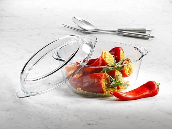 Generic - 2.0L Heat Resistant Glass Casserole Dish with Lid | Oven Safe Glass Bakeware for Baking, Cooking & Serving | Durable Borosilicate Glass Casserole for Kitchen Use
