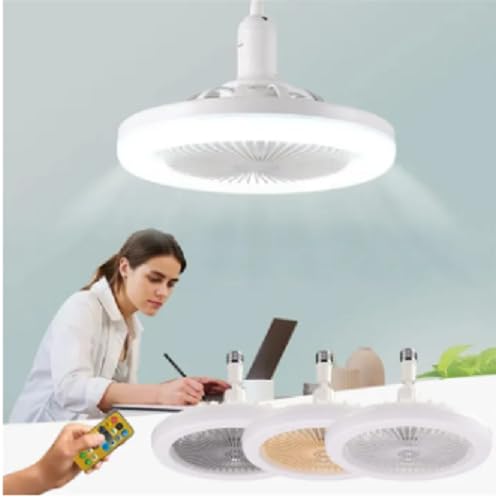 Generic - مروحة سقف 2 في 1 مع مصباح إضاءة وجهاز تحكم عن بعد E27 قاعدة محولة لغرفة النوم والمعيشة والمنزل صامتة