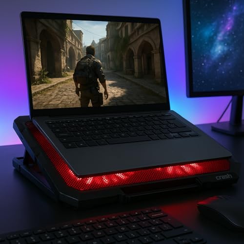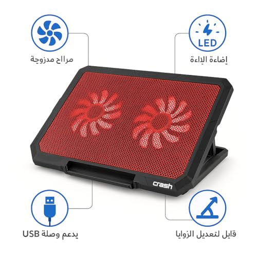 Generic - 2.8cm Slim Laptop Cooling Fan - 2 14cm Silent Fans - 8 Adjustable Height Levels - Dual USB Ports - Compatible with Laptops up to 17 Inch - c2000 (Red)