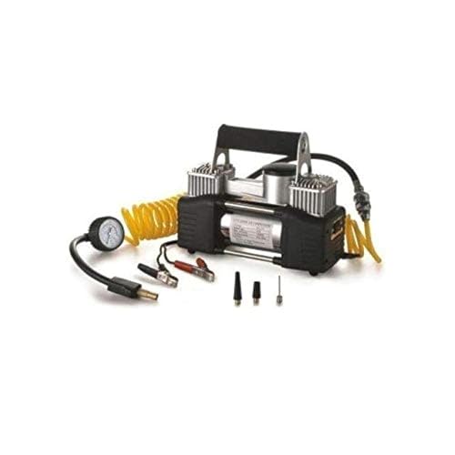 - امبير قوة تدفق الهواء (85 لتر/ الدقيقة) اقصى ضغط 150 رطل/البوصة المربعة /10 بار مزود بكابل 3.6 متر تيار مستمر مع مشابك كروكودايل مزود بخرطوم حلزونى 7.5 متر مع مقياس وسريع الربط مثالية لجميع انواع السيارات او الشاحنات