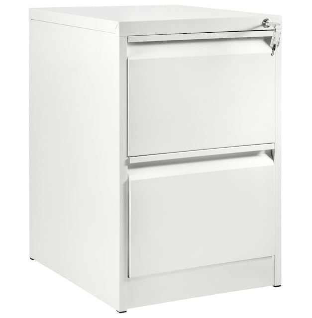 - DESIGN: Two-drawer metal filing cabinet in sleek white finish, perfect for modern office storage and organization