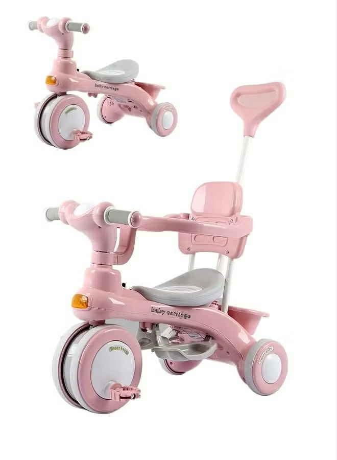 Generic - دراجة اطفال ثلاثية العجلات 2 في 1 قابلة للتحويل للاطفال من سن 2-5 سنوات مع مقبض دفع قابل للتعديل وحزام امان من هابي كيدو (بينك)