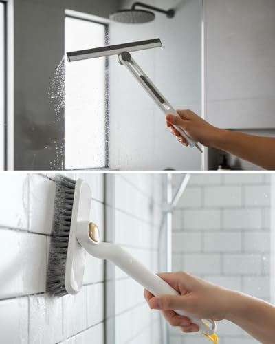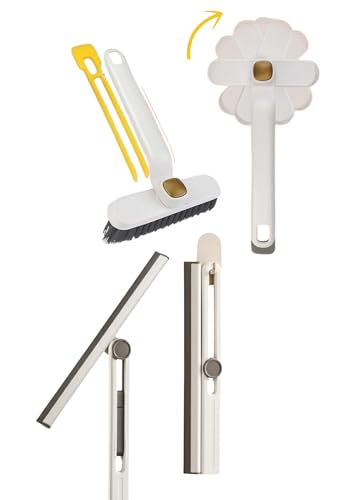 Generic - 2 in 1 Floor Cleaning Brush (V Bristle & Scraper) + 360° Rotating Silicone Glass Mop Foldable – for Cleaning Parts, Tiles, Glass, Mirrors