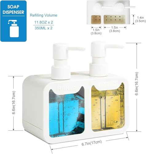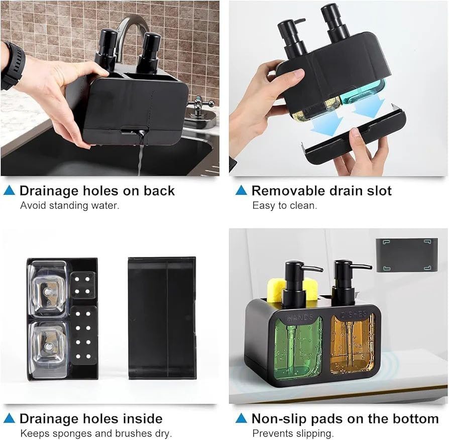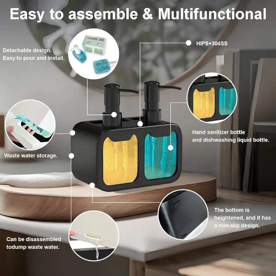 - Double soap dispenser allows you to use two different types of liquid soap at the same time.