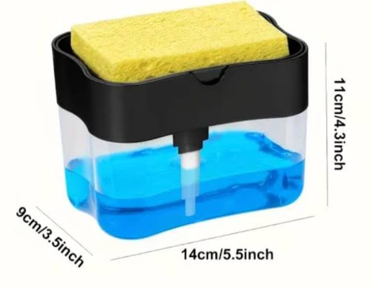 - تصميم 2 في 1: موزع صابون سائل مع حامل إسفنجة مدمج يجمع بين وظيفتين في جهاز واحد لتوفير المساحة على حوض المطبخ