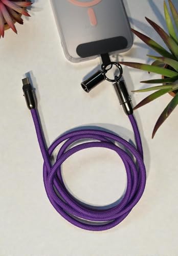 Generic - حبل قصير للموبايل 2 في 1 مع كابل شحن سريع من النوع C الى C - ارجواني