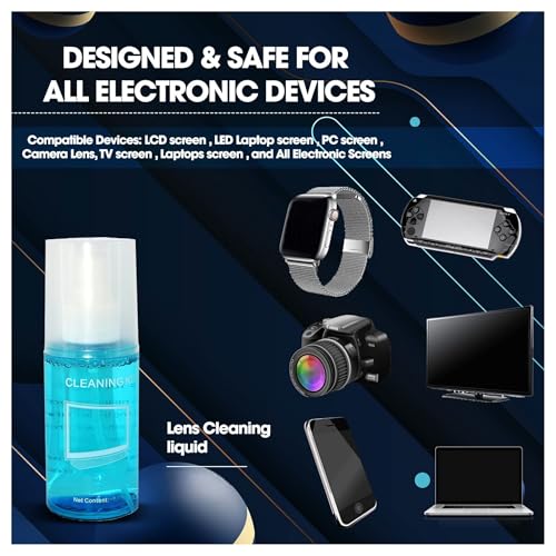- COMPLETE KIT: Includes 200ml spray bottle for convenient application and premium microfiber cloth for thorough cleaning and polishing of all your electronic devices and accessories