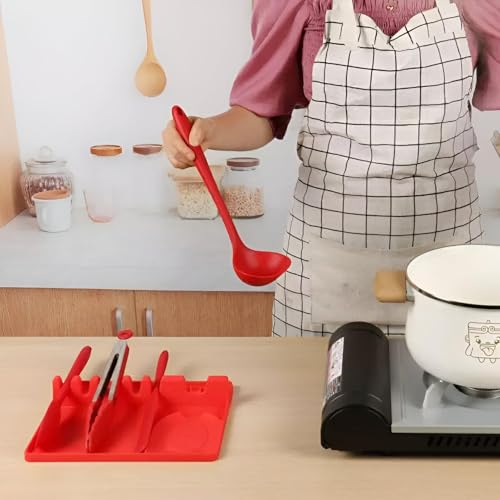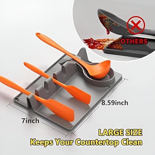 Generic - 2 in 1 Silicone Cutlery Spoon Holder: large capacity silicone design with built-in drip pad, 5 convenient slots, and hanging loop for effortless cleaning and storage.