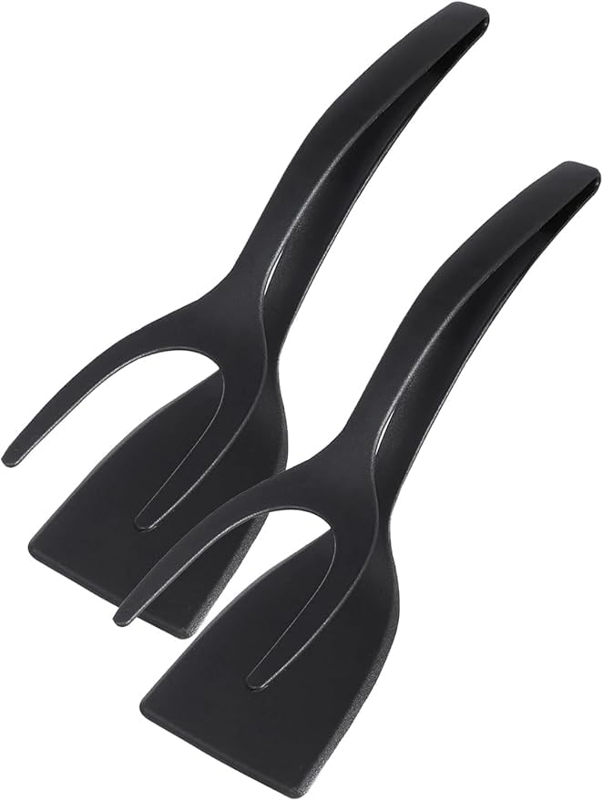 Generic - ملعقة مسطحة وملاقط 2 في 1، زعنفة البيض، ملعقة مسطحة للبيض المقلي، ملقط سباتولا وشرائح اللحم والبان كيك والسمك والتوست الفرنسي والاومليت والخبز المنزلي للمطبخ (قطعتان)
