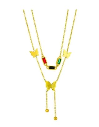 Generic - 2 Layered Stainless Steel Necklace with a Multi Colored Zirconic & Butterfly Pendant