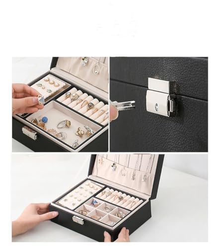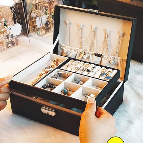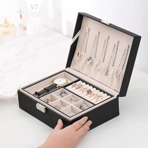 Generic - 2 Layers Jewelry Storage Box, PU Leather Jewelry Organizer Box, Jewelry Box with Lock and Removable Compartments for Earrings, Rings, Necklaces, Watches, Jewelry Box for Women Teen Girls Men
