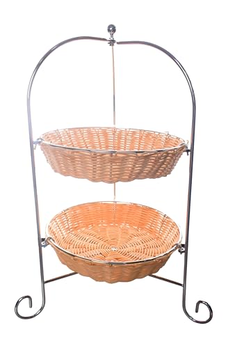 Generic - سلة خبز مكونة من 2 مستوى مع حامل - بيج فضي BT1