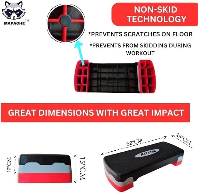 - Durable Material: MAPACHE Aerobic stepper is made from PPCP (Polypropylene Copolymer) makes it durable