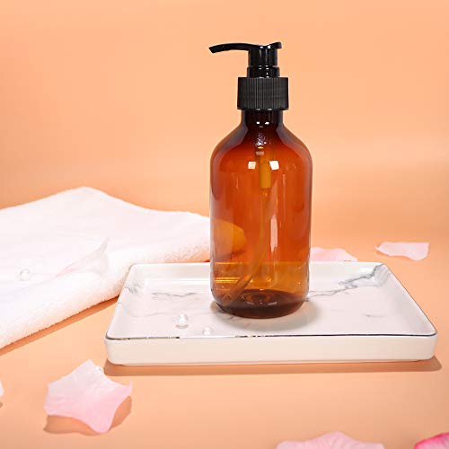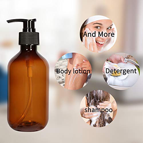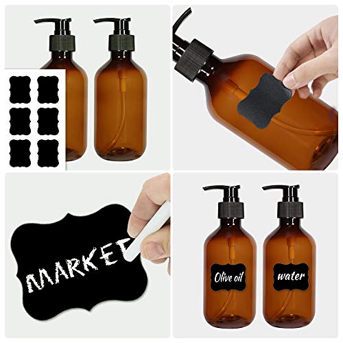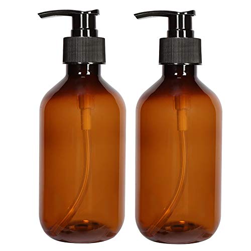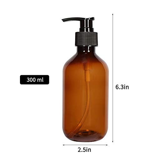STARSIDE - 2 Pack 300ml 10oz Empty Amber Plastic Pump Bottles.Refillable Bottle for Essential Oils,Lotions,Conditioner & Wash Shower Dispenser,Organic Beauty Products(4 Labels as gift)
