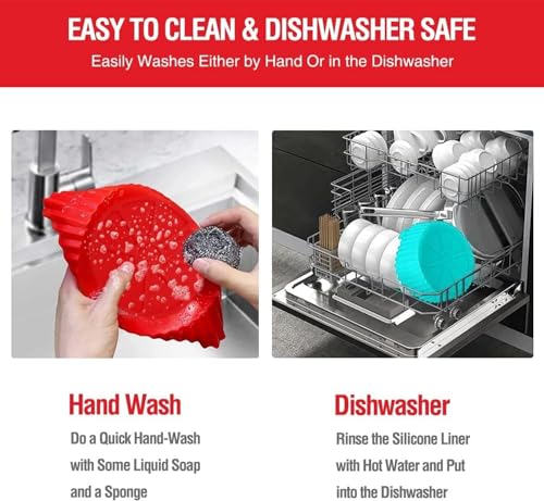 - DISHWASHER SAFE & EASY TO CLEAN: Silicone pot liners are completely dishwasher safe, allowing you to avoid the trouble of hand washing. Keeps your air fryer free from grease, food residue, and grime without compromising the life span of your air fryer.