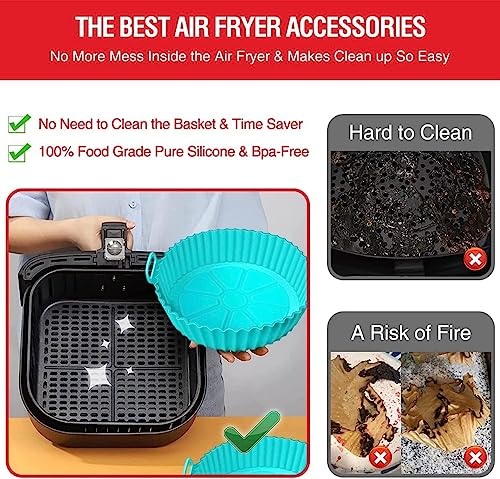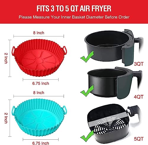 - INDISPENSABLE AIR FRYER ACCESSORIES: 2 PIECES Reusable Air Fryer Silicone Pots Liners. No more cleaning the air fryer basket, making you more willing to use the air fryer and enjoy cooking even more now. Silicone pot fits 2.9qt 3qt 4qt 4.2qt 4.5qt 4.8qt 5qt 5.5qt 5.8qt 6qt airfryers.