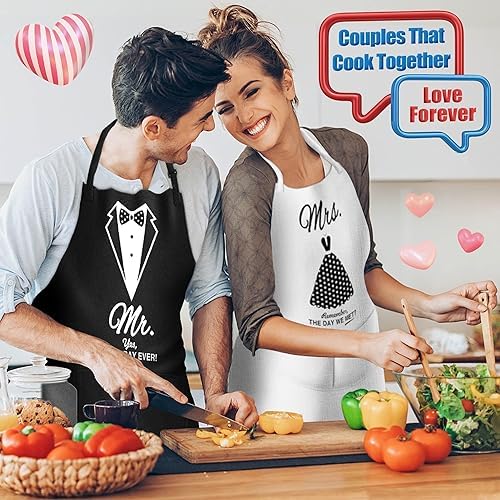 fashion mania - 2 pack Apron Wedding Engagement Gifts for Couples, Bridal Anniversary Christmas Gifts for Couples