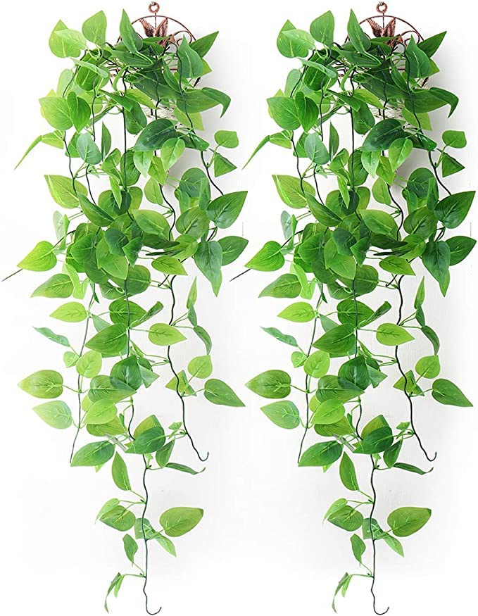 Generic - 2 عبوة من نباتات معلّقة صناعية مع سلالات، نبات اللبلاب المزيف معلق على الحائط نباتات خضراء لديكور المنزل والحديقة وغرفة الزفاف 12 فرع