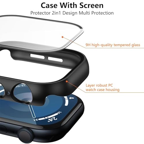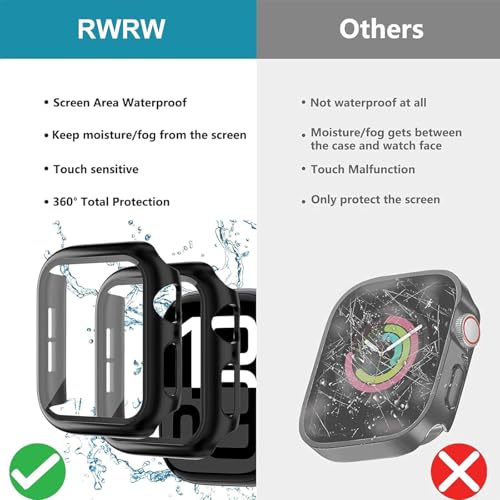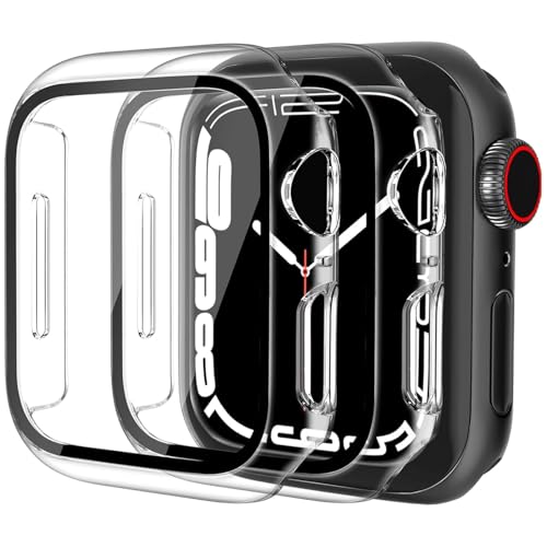 RWRW - جراب مع شاشة حماية مدمجة من الزجاج المقوى متوافق مع ساعة آبل سلسلة 9/8/7 مقاس 41 ملم، جراب حماية كامل مع إطار صلب من البولي كربونات لواجهة الساعة للرجال والنساء، عبوة من قطعتين (شفاف، 41 ملم)