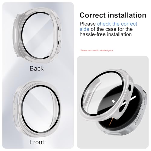 Wowstrap - جراب حماية من الزجاج المقوى لساعة سامسونج جالاكسي 8 مقاس 44 ملم للرجال والنساء، حماية شاملة من البولي كربونات مضاد للانزلاق ومقاوم للخدش لساعة سامسونج جالاكسي 8، ملحقات 44 ملم