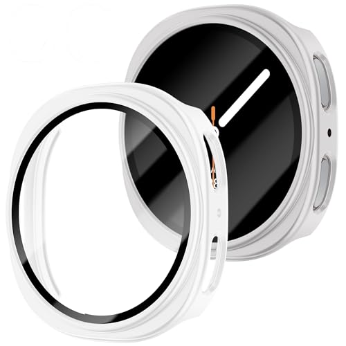 - 【حماية شاملة】: مزيج غطاء الحماية لساعة سامسونج جالاكسي 8 مصنوع من مادة البولي كربونات عالية الجودة والمتينة، مع شاشة حماية مدمجة من الزجاج المقوى، مما يوفر تغطية كاملة ومقاومة للاهتراء والصدمات والسقوط، مما يوفر حماية شاملة لملحقات ساعة جالاكسي 8، مما يحمي ساعتك من الجيل الثامن من الغبار والأوساخ والخدوش.