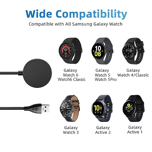 - Compatibility: This Galaxy watch charger compatible with Samsung Galaxy Watch 5/5 Pro, Galaxy Watch 4/4 Classic, Galaxy Watch 3, Galaxy Watch Active 2/Active.