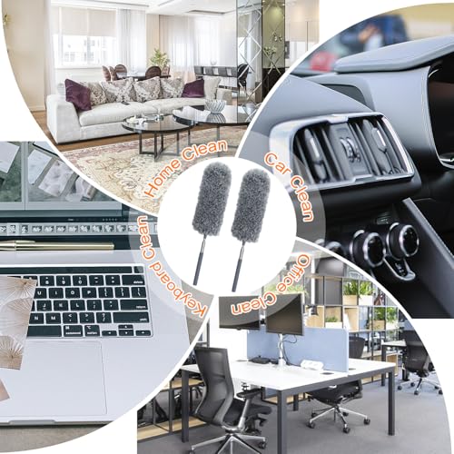 - Multifunctional Duster : The lightweight yet sturdy microfiber feather duster is designed for durability and versatility, making it ideal for removing dust from a variety of surfaces. It is perfect for cleaning household appliances like cars, computers, air conditioners, televisions, light bulbs, and photo frames, as well as furniture such as sofas, tables, and cabinets.