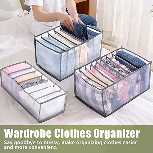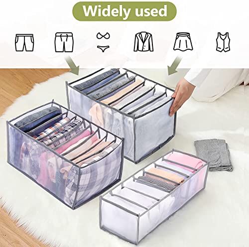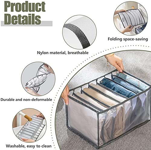 atongsakw - 2 Pack Pants Drawer Organizer Divider Underwear Organizer, 7 Cells Jeans Compartment Storage Box Foldable Closet Cabinet Organizer Underwear Mesh Storage Boxes for Socks, Handkerchiefs, Belts, Gray