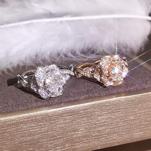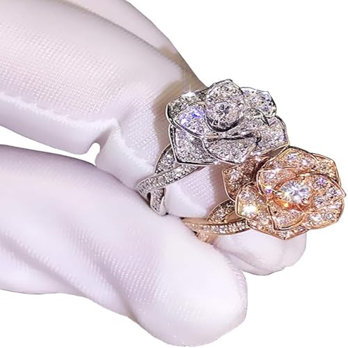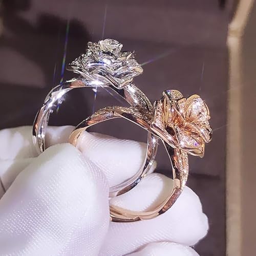 fashion mania - خاتم ذهبي وردي للنساء، خاتم من الماس المقلد للنساء، خاتم زفاف اجتماعي متعدد الاستخدامات للاستخدام اليومي، عبوة من قطعتين