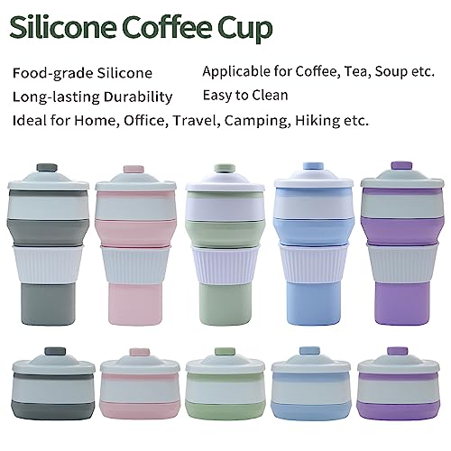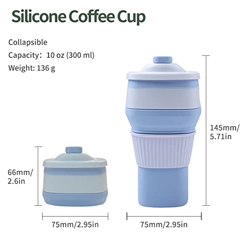 NWsystems - أكواب سيليكون قابلة للطي من قطعتين، مجات قهوة مع غطاء مقاوم للتسرب للمنزل والمكتب والسفر والجيم والتخييم والتنزه وركوب الدراجات والنزهات والعطلات وغيرها وللعائلات والأصدقاء (300 مل)