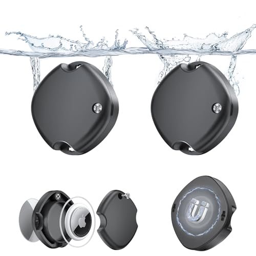 joremx - 2 Pack Strong Magnetic AirTag Holder,Discreet Waterproof AirTag Holders for Apple AirTags,Universal Shatterproof Air Tag Case with Anti-Theft Screws and 3M AdhesiveSticker for Car,Truck,Trailer&Skis