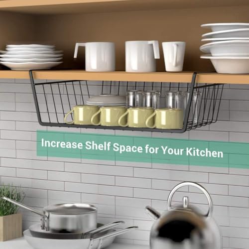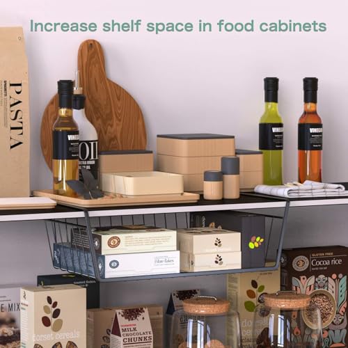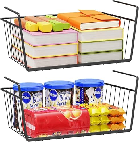 Generic - سلة تحزين معدن للوضع تحت الارفف وتوفير المساحة لتنظيم المطبخ والمكتب والدواليب والحمام والمكتبة، قطعتين، اسود