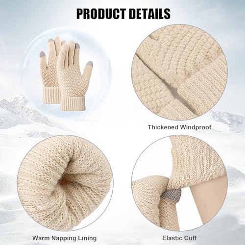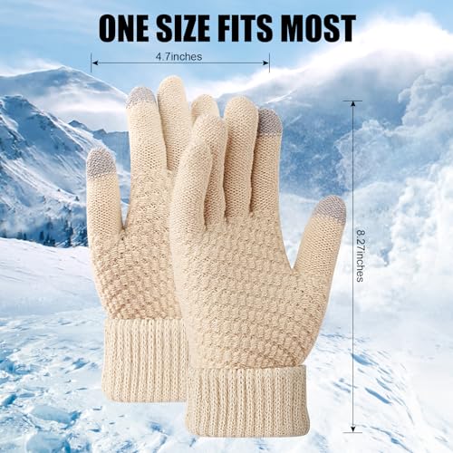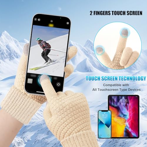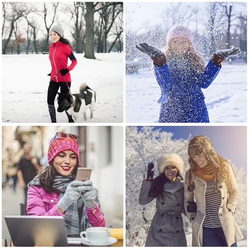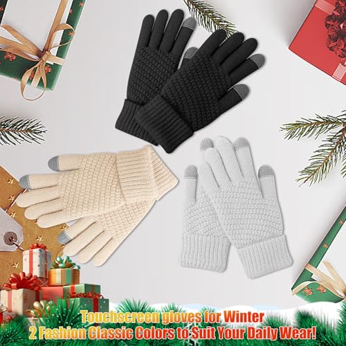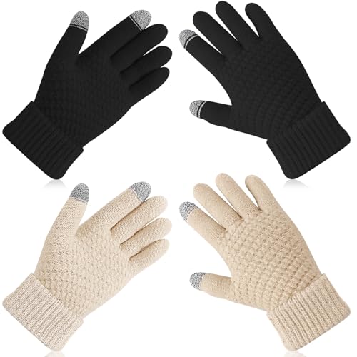 Walsjo - 2 Pairs Women's Winter TouchScreen Gloves Warm Fleece Lined Knit Gloves Elastic Cuff Gloves for Women Cold Weather